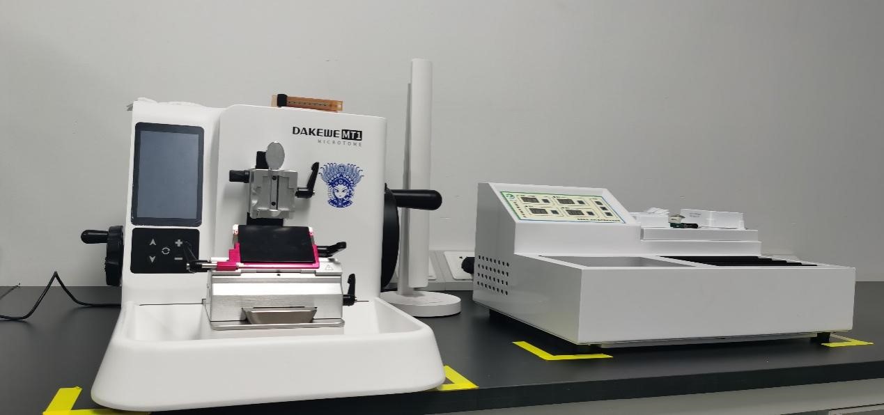 珈創(chuàng)生物病理室成立于2022年,擁有達(dá)科為切片機(jī)及攤片機(jī)、達(dá)科為全達(dá)自動(dòng)組織脫水機(jī)、奧林巴斯顯微鏡。可提供動(dòng)物組織、細(xì)胞等病理制樣和觀察服務(wù),可有效為客戶提供服務(wù)具有周期短、定位準(zhǔn)、質(zhì)量高等特點(diǎn)。病理室可針對(duì)動(dòng)物試驗(yàn),提供小鼠及其他實(shí)驗(yàn)動(dòng)物的組織HE染色切片,觀察腫瘤或其他病變,滿足要《中華人民共和國(guó)藥典 三部》的要求;對(duì)于干細(xì)胞三系分化,畸胎瘤的三胚層分化,有豐富檢測(cè)經(jīng)驗(yàn)。檢測(cè)報(bào)告認(rèn)可度高,協(xié)助多家企業(yè)的IND及BLA申報(bào)。