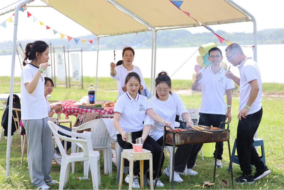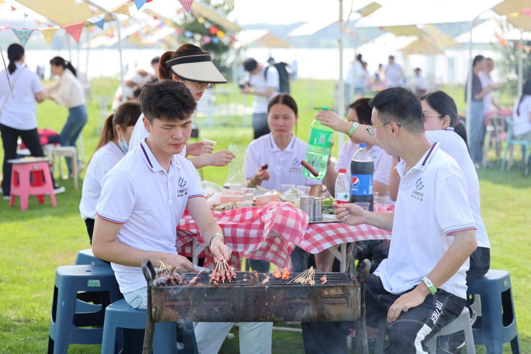 秋日的梁子湖,水波蕩漾,微風(fēng)拂面,一排排的帳篷和燒烤爐瞬間激起了大家的熱情。公司活動(dòng)組委會(huì)準(zhǔn)備了豐盛的食材,大家親自動(dòng)手,一展廚藝,大家在歡聲笑語(yǔ)中大快朵頤!
