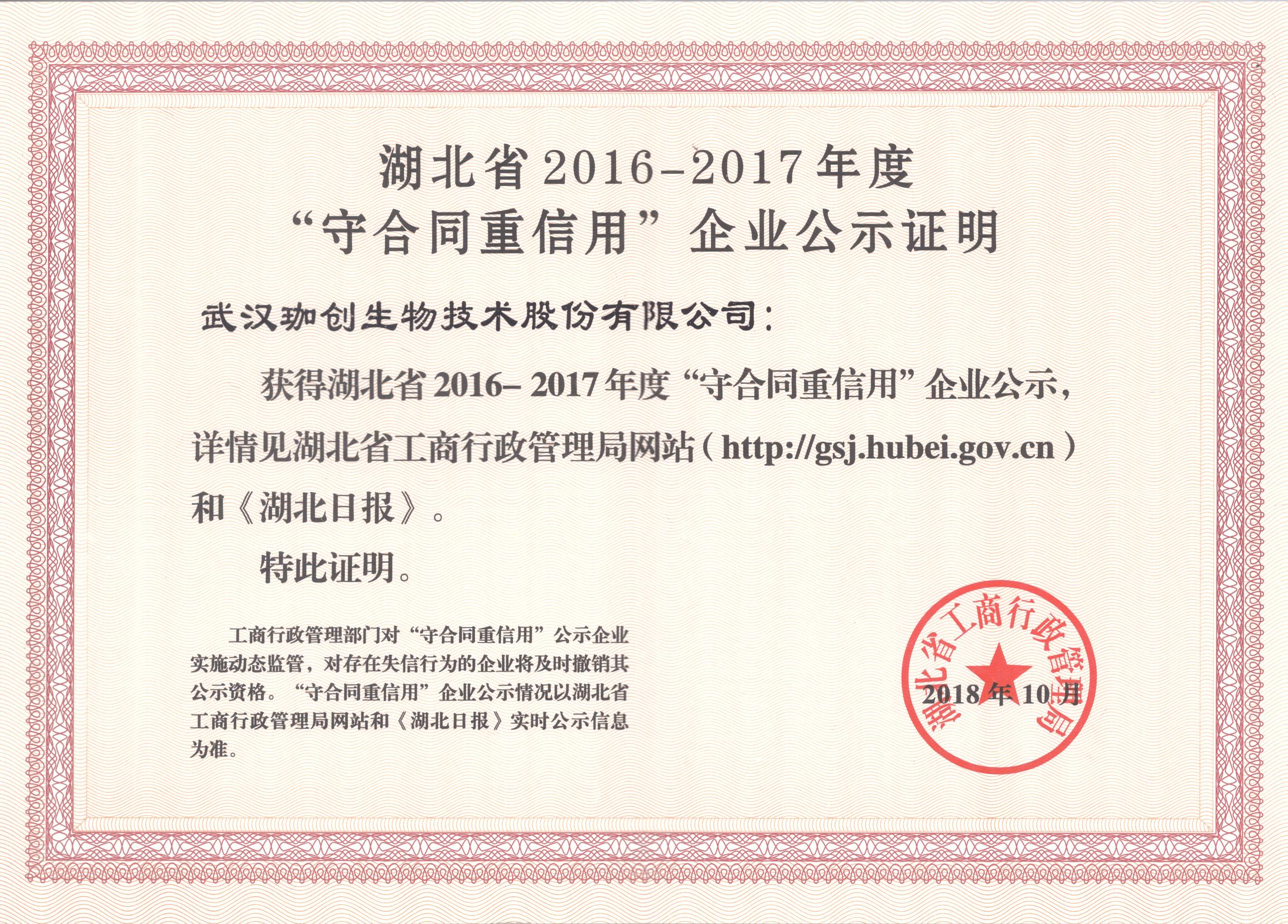 連續(xù)榮獲湖北省第十六屆守合同重信用榮譽(yù)證書