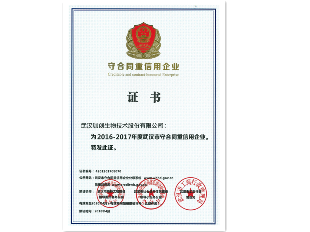 連續(xù)榮獲武漢市守合同重信用企業(yè)