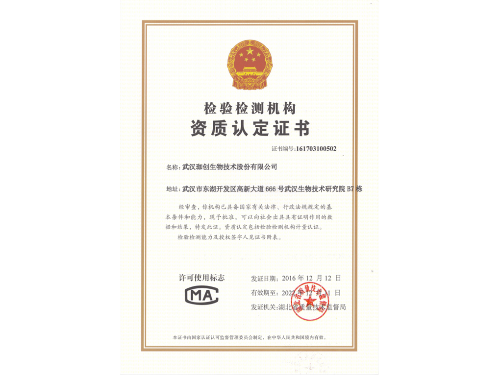 公司科技成果“藥品/生物制品生產(chǎn)用細(xì)胞質(zhì)量控制關(guān)鍵技術(shù)研究與應(yīng)用”項(xiàng)目榮獲“湖北省科學(xué)進(jìn)步二等獎”,同月獲得CMA資質(zhì)認(rèn)定證書。