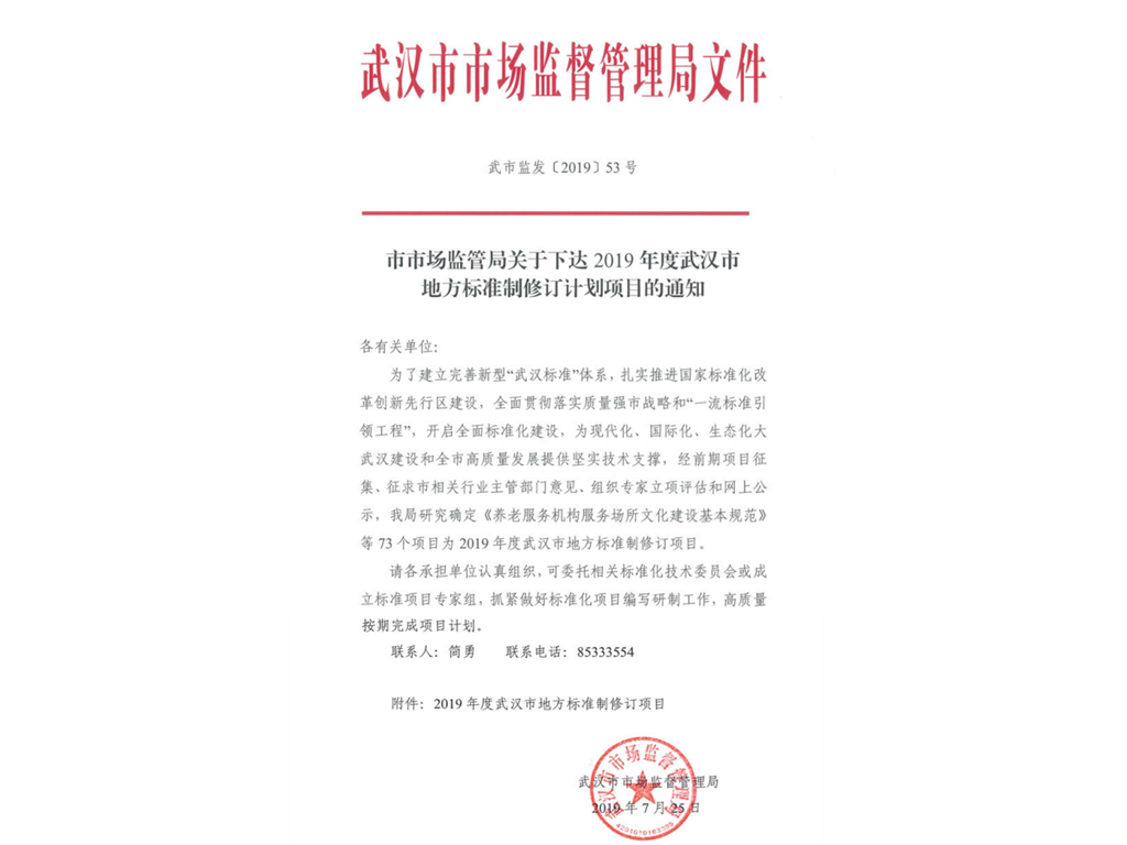 獲準(zhǔn)承擔(dān)部分2019年度武漢市地方標(biāo)準(zhǔn)制修訂項(xiàng)目