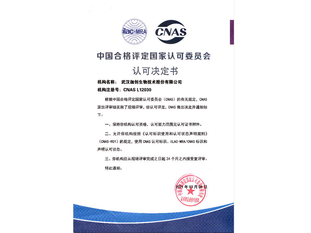 武漢珈創(chuàng)生物技術(shù)股份有限公司實(shí)驗(yàn)基地通過CNAS評審
